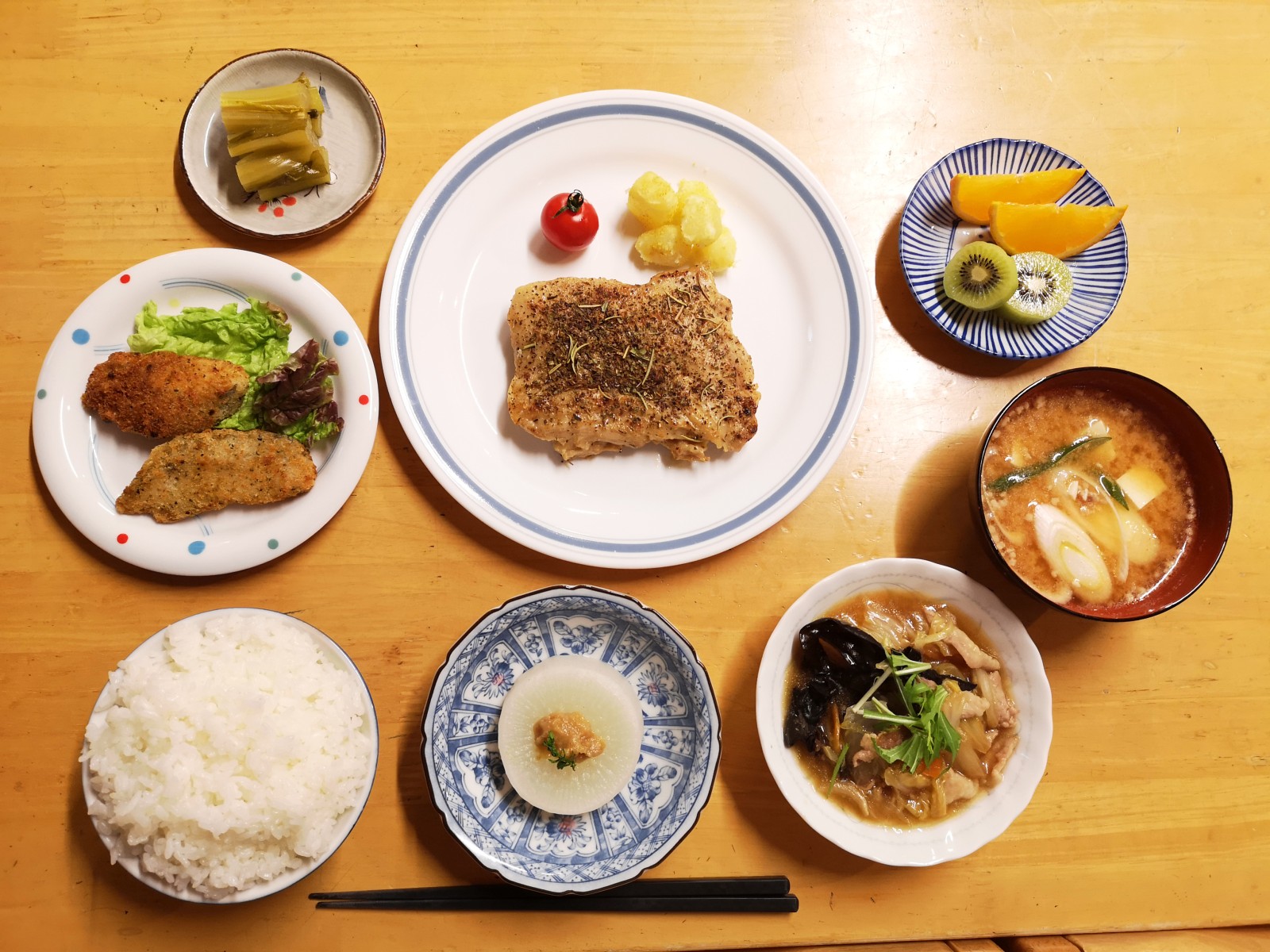 地元の素材を大切に、和洋中を織り交ぜた家庭料理。お米はこだわりの自家製減農薬有機栽培米です。